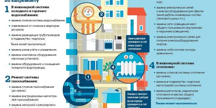 - Ремонт инженерных коммуникаций (электро-, газо- и водоснабжение, отопление, канализация);