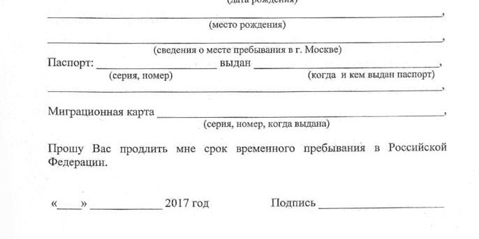 - Делать заявление. В нем должны быть подробно указаны причины увеличения срока пребывания;