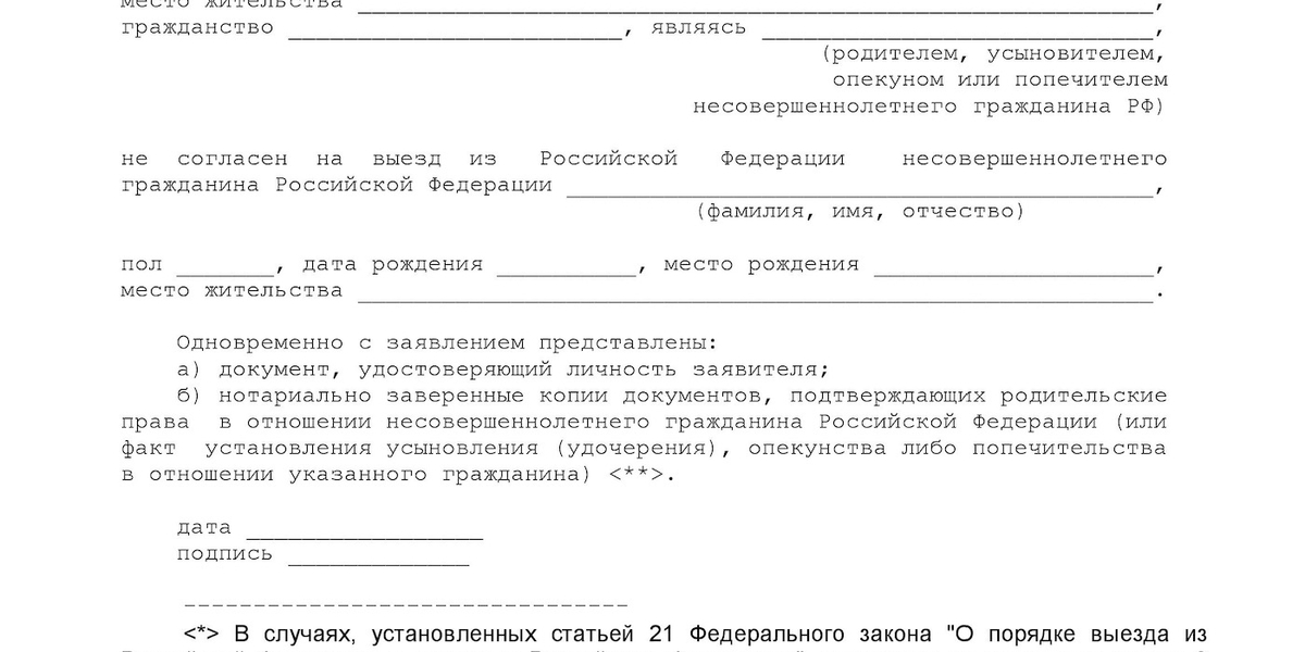 Согласие на выезд оформляется нотариусом. Потребуются документы о ребенке и сопровождающем лице. В документе прописывается согласие на конкретную поездку в определенные даты. Однако вы можете дать согласие на поездку, пока вам не исполнится 18 лет.